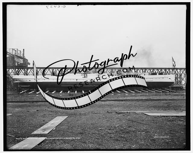 Steamer Rochester,ways,broadside,boat industry,ships,Wyandotte,Michigan,MI,1910