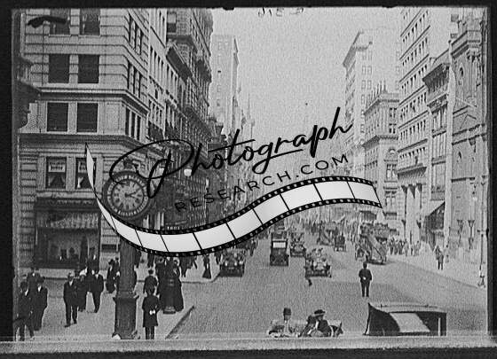 New York City,road,building,clock,crowd,streets,automobiles,Fifth Avenue,NY,1900