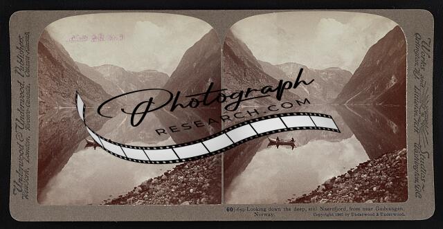 Looking down the deep, still Naerofjord, from near Gudvangen, Norway