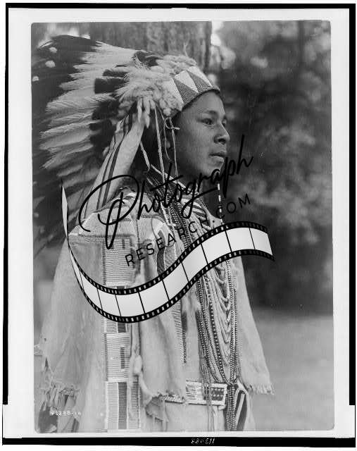 Youth in holiday costume,Umatilla Indian youth,feather headdress,beaded buckskin
