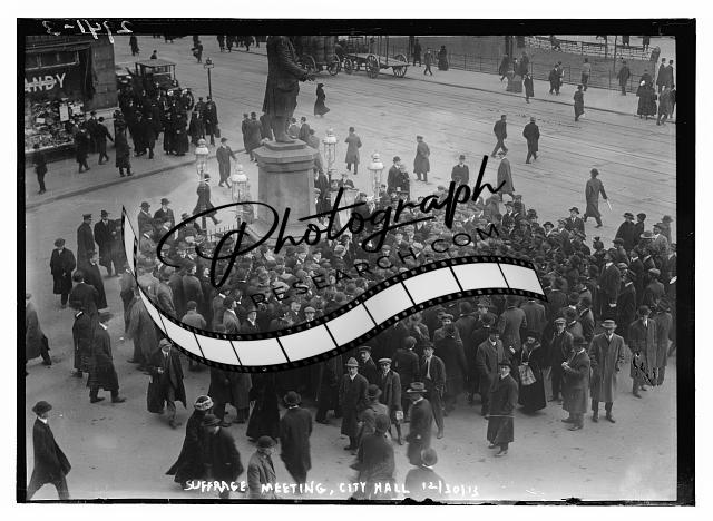 Suffrage meeting - City Hall,crowd gathered,December 30,1913,street,automobile
