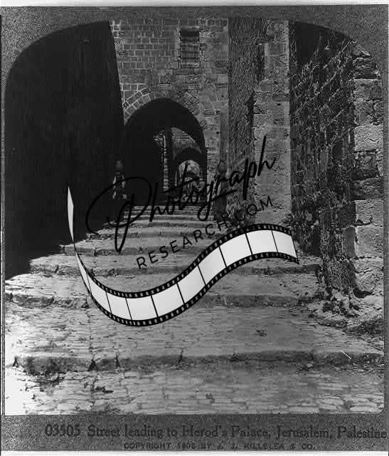 Summary: Photographs show general views of cities, towns, and villages; daily life and occupations in urban and agricultural settings; prominent monuments and landmarks; archaeological sites and ancient buildings; and religious rites and processions in places in Palestine (present day Israel and the West Bank), Syria, Lebanon, Jordan, Turkey, and the Sinai, Egypt. Locations in Palestine include Jerusalem, Bethany, Cana of Galilee, Siloam, Ain Karim, Ramallah (Ram Allah), Emmaus, Jaffa, Capernaum, Athlit, Beeroth (Birah), Bethlehem, Bethshan (Bet She?an), Endor (Ein-dor), Magdela (Migdal), Kirjath-Jearim (Abu Ghaush), Mar Saba, Nob, Kedesh Napthali, Dothan, Daberath, Nazareth, Safed, Tiberias, Nain (Nein), Haifa, Bethsaida, Hebron, Gaza, Sychar, Mizpah, Gezer, Jericho, Shiloh, Samaria, Chorazin (Korazim), Hunin, Sheehem, Rosh Pinah, and Beersheba. Geographic features in Palestine include the Plain of Jezreel, the Plain of Sharon, the Plain of Esdraelon, Mt. Carmel, Mt. Gerizim, Mt. Tabor, Mt. Hermon, the Dead Sea, the Sea of Galilee, the Wilderness of Judea, the Ajalon Valley, the Jordan River, and River Kishon. Ba?labakk, Tyre, Zahleh, Beirut, Tripoli, Sidon, and Belfort Castle in Lebanon; Damascus, Baniyas and the castle of Subebeh in Syria; Amman, Kerak, Jerash (Gerasa), Mt. Nebo in Jordan; Tarsus, Turkey; and Mt. Sinai in the Sinai Penninsula of Egypt are also depicted. Other notable photographs include models of Solomon Temple and Herod's Temple and the Temple area, a Bethlehem Mission School, the Jewish colony of Rosh Pinah, potters in Nazareth and Ram Allah, a chapel of the Orthodox Syrians in Jerusalem, 'Tombs of the Macabees' near Ramleh (Ramlah), inlaid pearl workers in Damascus, the courtyard of a han in Shechem (Nablus), and portraits of the Sheik of the Bar Ibrahim Tribe, Bedouins, Samaritans, Arabs, Druze, Jews, and others.