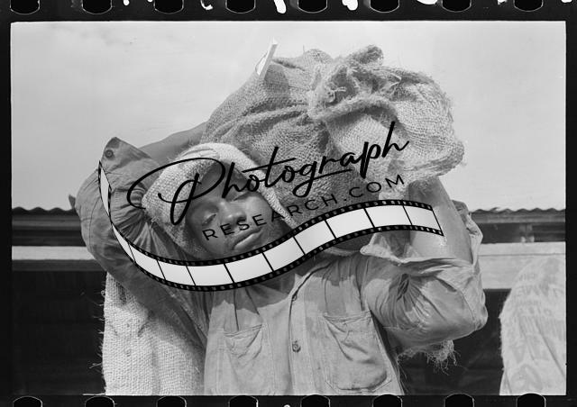 Stevedore with sack of oysters,Olga,Louisiana,LA,Farm Security Admin,FSA,1938