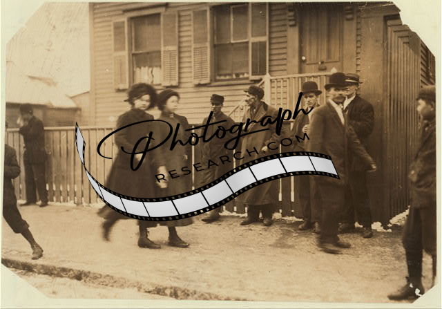 Young girls running gauntlet of men making remarks,New Bedford,Massachusetts,1