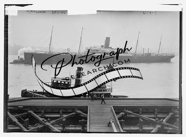 MINNEHAHA sailing,ship,American flag on boat at dock,1910-1915