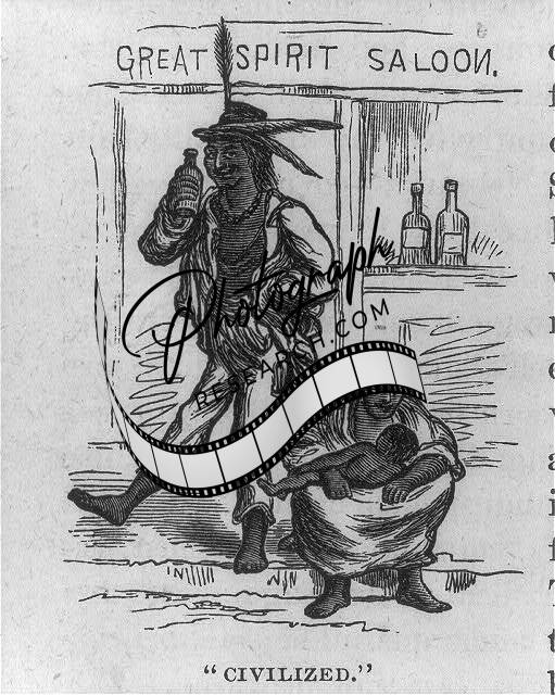 Civilized,Caricature,drunken Indian couple at 'Great Spirit Saloon',1878,Beadle
