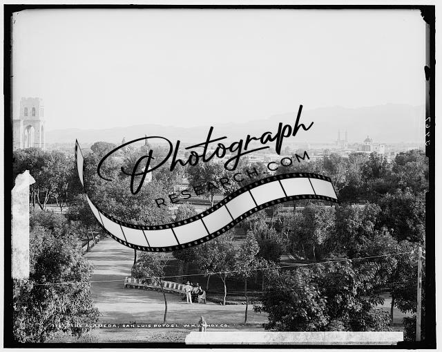 Alameda,streets,buildings,tree,San Luis Potosi,Mexico,Detroit Publishing Co,1880
