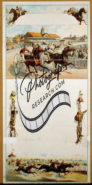 Stock poster for harness racing,1890's,photograph,spectators,jockeys