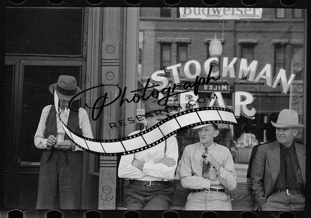 Stockmen in front of bar on main street,Miles City,Montana,MT,June 1939,FSA,4