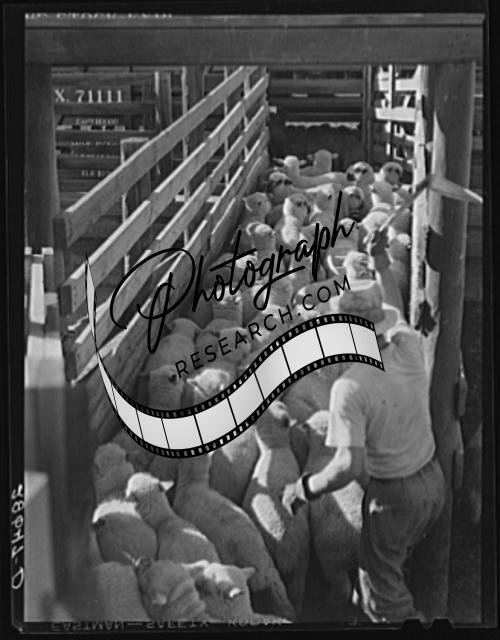 Title: Loading sheep for eastern packing plants. Stockyards, Denver, Colorado