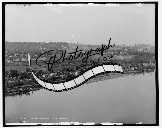 Saint Paul,high bridge,water body,Mississippi River,buildings,Minnesota,MN,c1905