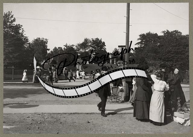Entrance,men,women,street,Evergreen Cemetery,tombstone,Brooklyn,New York,NY,1890