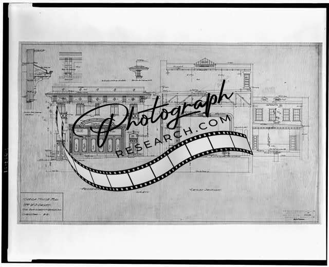 Summary: Includes working drawings showing store building, facade, and show windows as plans, elevations, and sections.