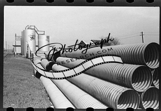 Oil tanks,pipes,Grundy County,Iowa,IA,April 1940,John Vachon,FSA,United States