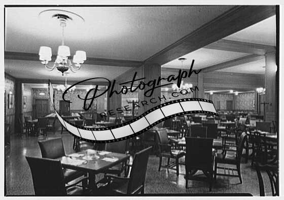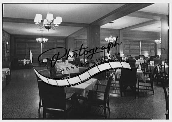 Title: Stouffer's restaurant, E. 42nd St., New York City. Grille Room, to London Room, luncheon set-up