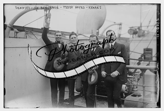 Dempsey,Joe Benjamin,Teddy Hayes,Kearns,ship passengers,boat,deck,railing,waving