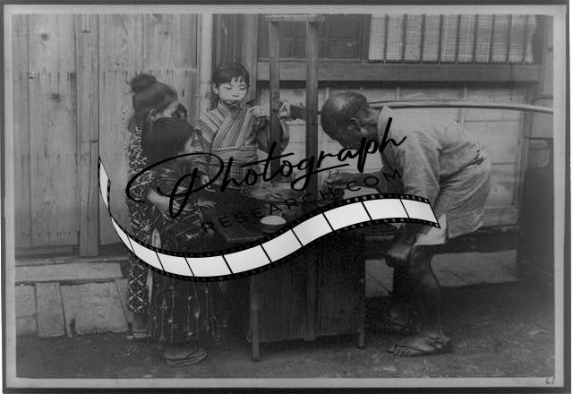 Boiled Dinner at your house door,man serving food to children,Japan,1915-1925