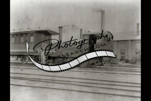 The Rocket,first locomotive built in China,c1900,locomotive behind caboose,man