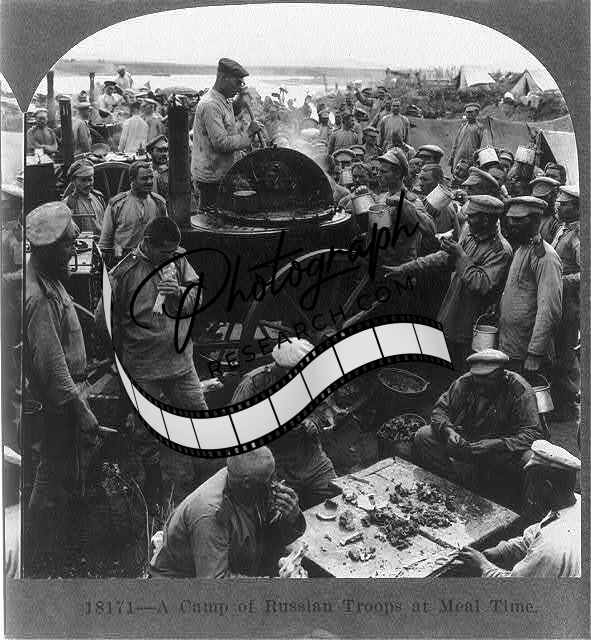 Photo of Stereograph,c1919,Camp of Russian Troops,Meal Time,Military,Soldiers