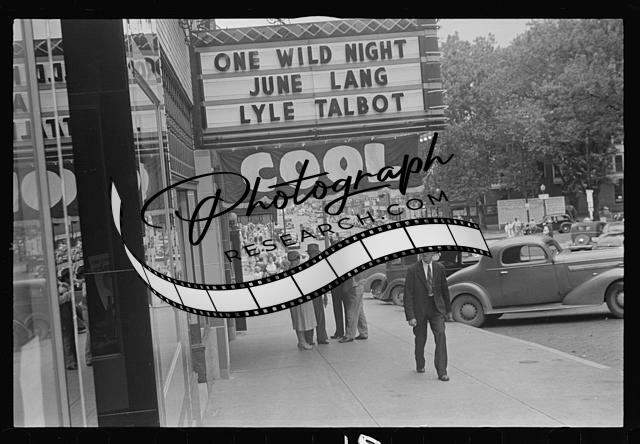 Street scene showing movie theater,vicinity of Lancaster,Ohio,OH,August 1938