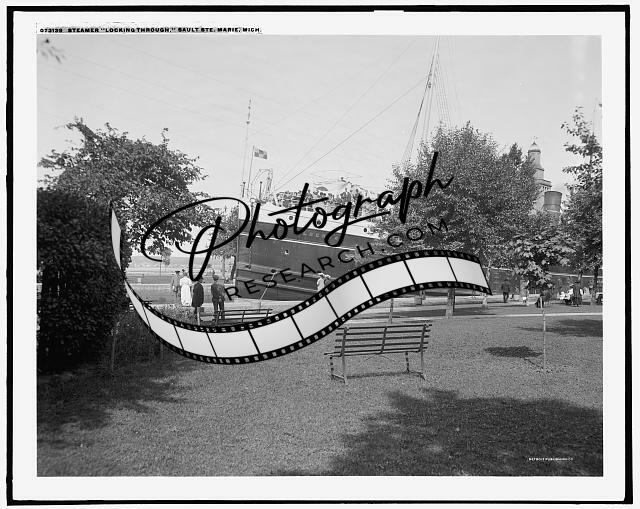 Steamer locking through,canals,boats,ships,Sault Stephen Marie,Michigan,MI,1910