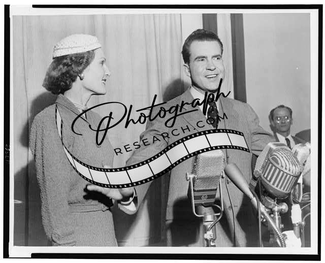 Vice President Elect Richard Nixon,microphones,wife,Pat Nixon,1952,Politician
