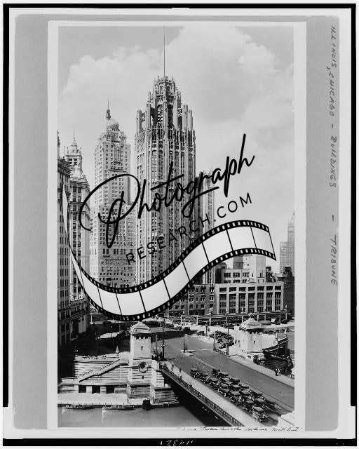 Tribune tower building,looking northeast,Chicago,Illinois,IL,c1931,Newspaper