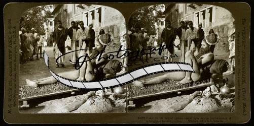 Fakir on Bed of Nails Spikes,Religious Fanatic,India,c1907 Photo of Stereograph,