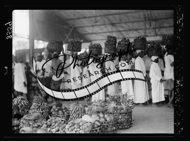 Fruit market. Bananas,pineapples,Zanzibar,Africa,Matson Photo Service,1936