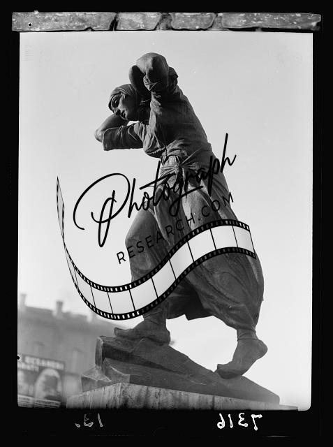 Turkey. Ankara. Statue of peasant woman carrying a shell below Ataturk,1935