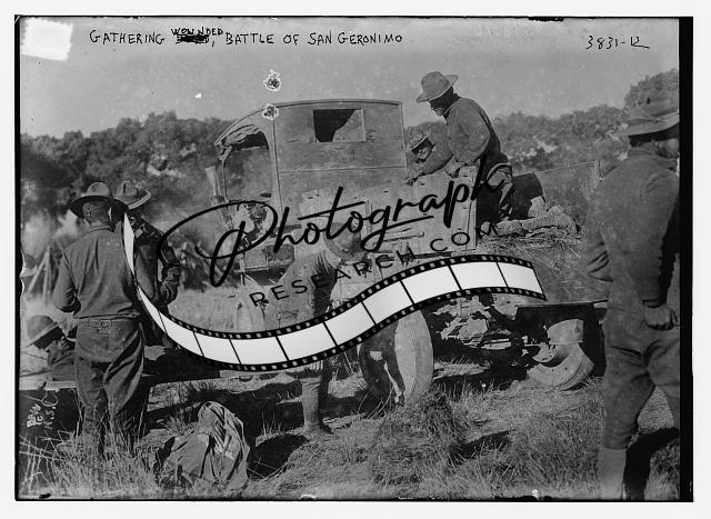 Gathering wounded,Battle of San Geronimo,automobile,men,military,Bain News