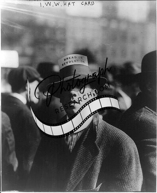I.W.W. hat card 'Bread or Revolution',April 13,1914,man wearing hat