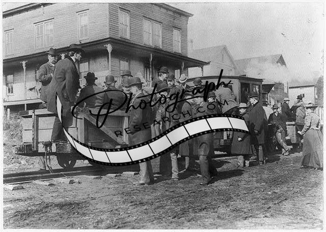 Arbitraters at the Mines,Strikes,c1902,buildings,crowd of men wearing hats