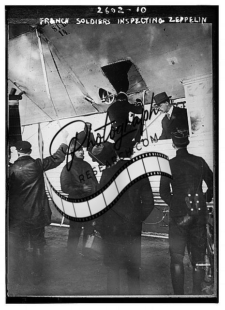 French soldiers inspecting Zeppelin IV,airship,April 1913,German War Dirigible