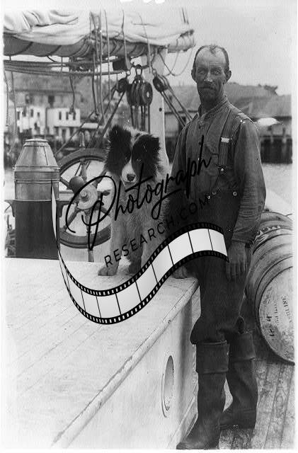 Job Small,dog,c1922,man and dog on deck of Arctic ship Bowdoin