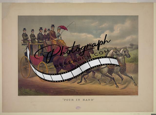 'Four in hand',c1887,Currier & Ives,Photograph,horse-drawn carriage,men,women