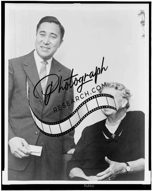 Eleanor Roosevelt,Gyalo Thondup,brother of Dalai Lama of Tibet,1959