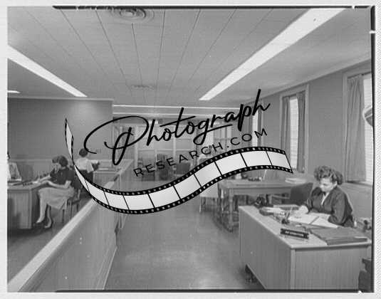 Title: Suffolk County Federal Savings, Babylon, Long Island, New York. Main banking room