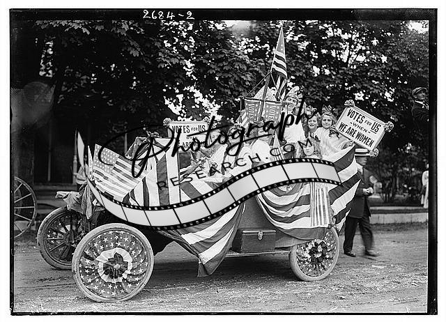 Suffragists in parade,women,girls,automobile,parade float,Votes for Women,c1910
