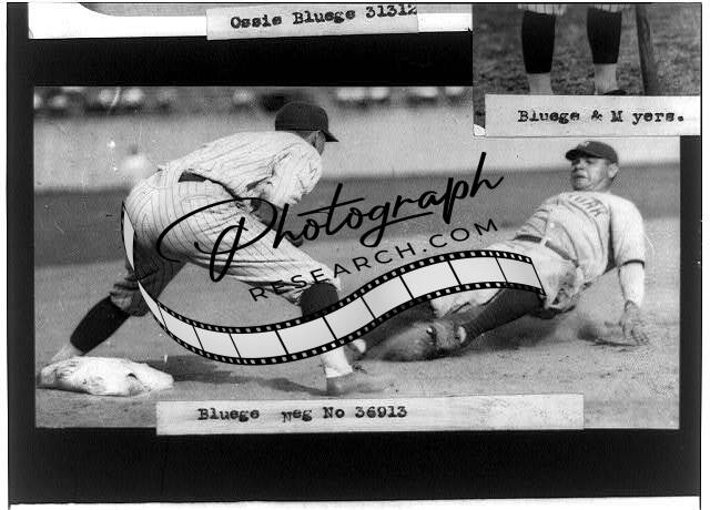 Ossie Oswald Louis Bluege,Washington Senators,Babe Ruth sliding,third base,1925