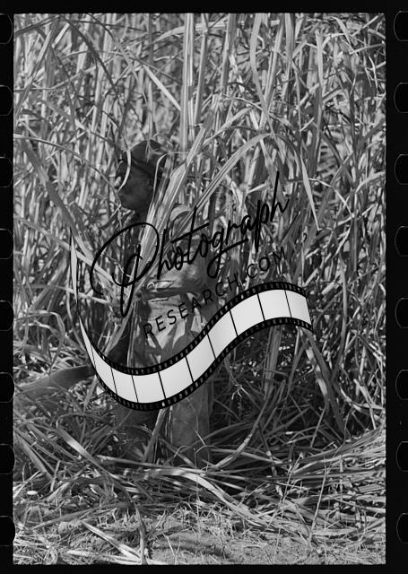 Title: Sugarcane cutter and waterboy in field near New Iberia, Louisiana