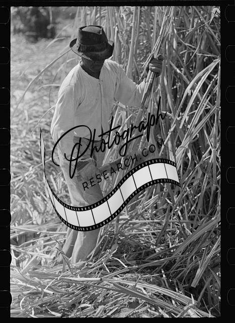 Sugarcane cutter and waterboy in field near New Iberia,Louisiana,LA,FSA,1938,1