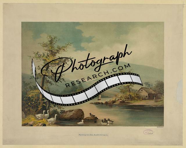 Spring on the Androscogan,Ducks,Swans,Mountains,Trees,Landscape,c1891