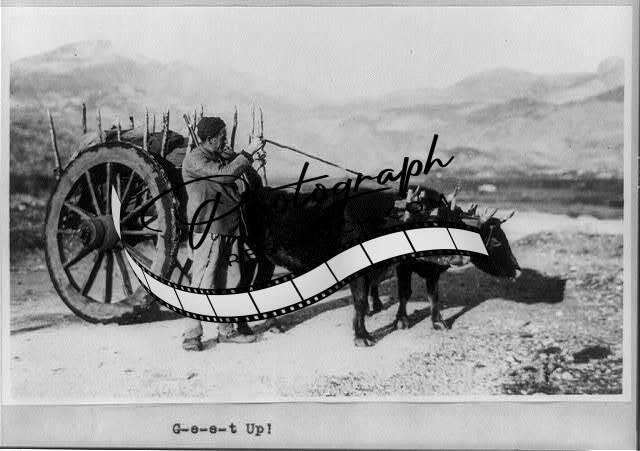 G-e-e-t up!,Man w/ cart drawn by oxen,Albania,1880-1924,Ox Team
