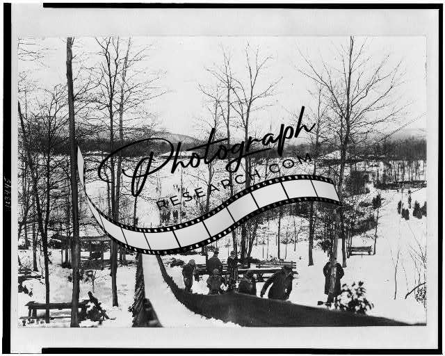 Toboggan Slide,Hessian Lake,Bear Mountain,Sleds,Winter,Snow,1900-1930