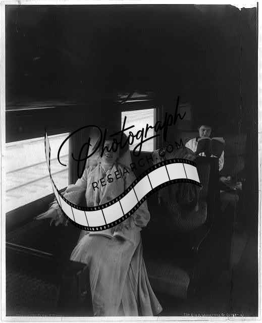 Look pleasant,please,Woman relaxing,railroad coach,1905