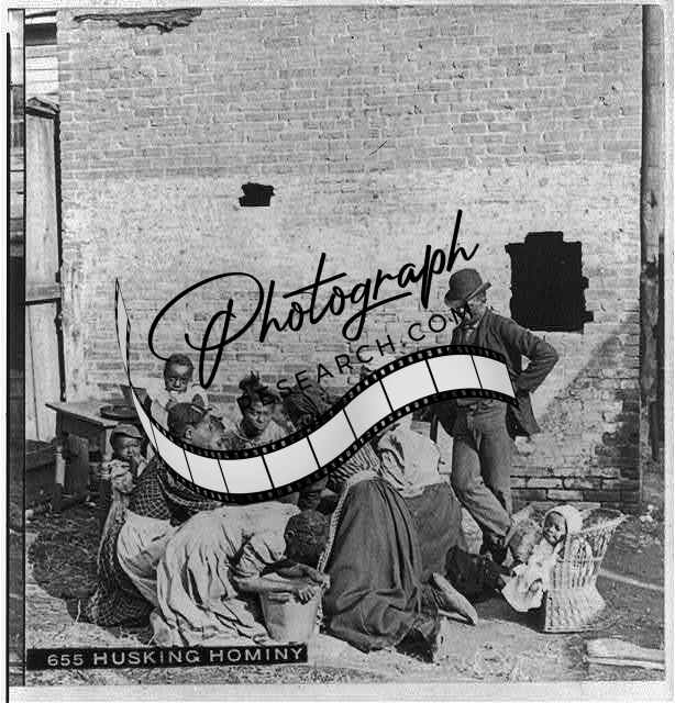 Husking hominy,Alfred S. Campbell,c1898,Negros on street