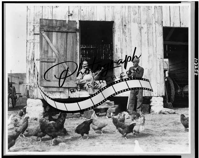 Brooke Johns playing banjo,African Americans,chickens,rural life,barns,1927