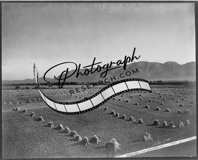 View of harvested hayfields toward mountains,Flathead,Kalispell County,MT,c1907