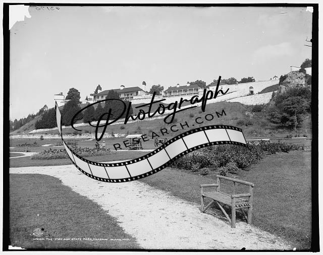 Fort Mackinac,state park,trails,paths,benches,buildings,Island,Michigan,c1906